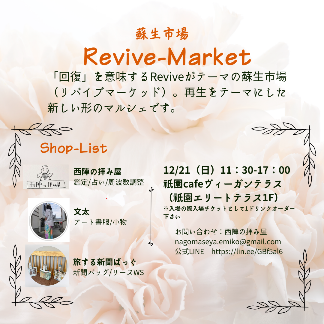 12/21(日)11:30~17:00 リバイブマーケット(蘇生市場)