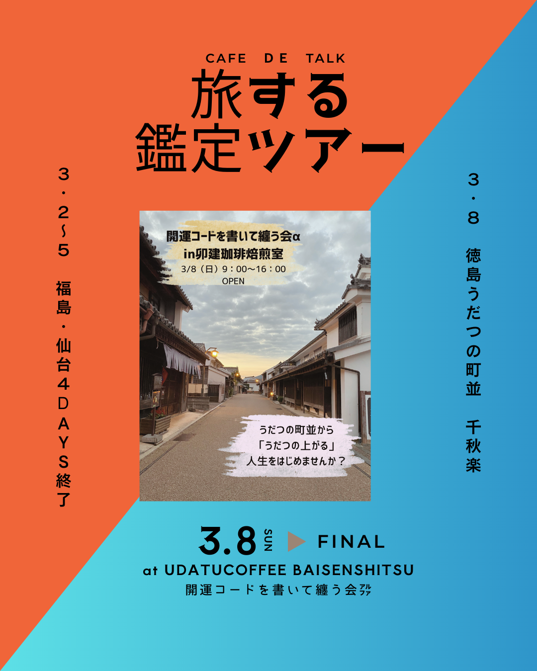 3/8(日)旅する鑑定ツアーFinal in徳島うだつの町並~開運コードを書いて纏う会α