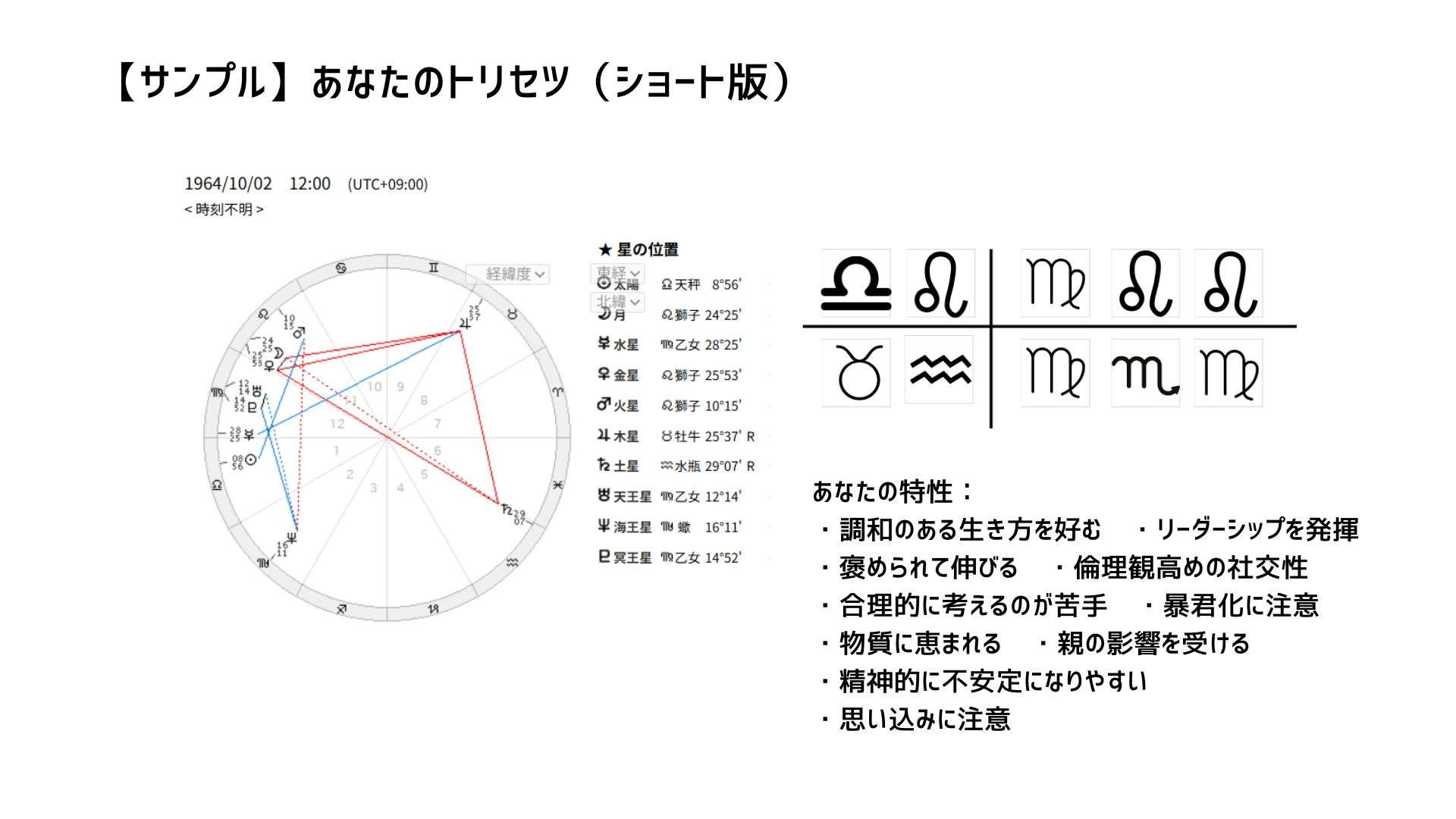 本鑑定資料は、従来の鑑定に利用してきたPMA占星学を利用したホロスコープ解析を